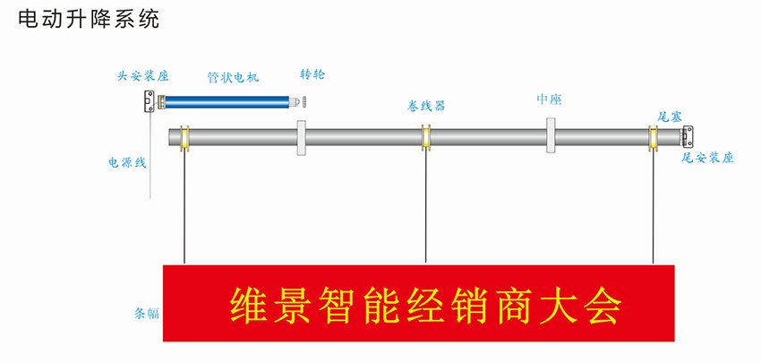 电动升降开合帘机构是电动升降帘机构和电动开合帘机构组成的系统,系统通过电机的运行电动开合帘的开合运动以及其整套电动开合帘系统的升降运动,电动升降系统可以装一套到三套电动活手动开合系统。同时也可以将帘头安装在系统上,可以实现帘布和帘头一起升降运行。
