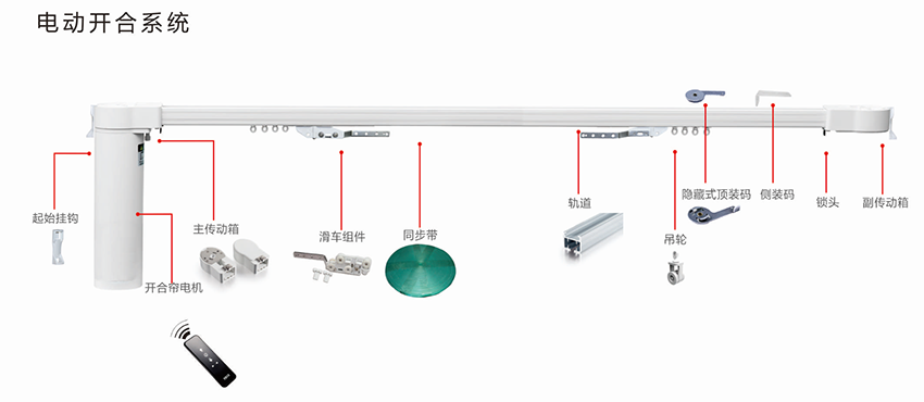 2.用于直轨开合窗帘,安全负载30kg,轨道长6米;